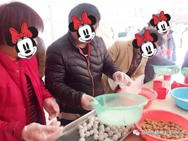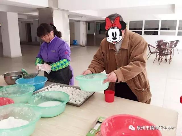 休养员们齐动手,一起滚出又大又圆的元宵圆。