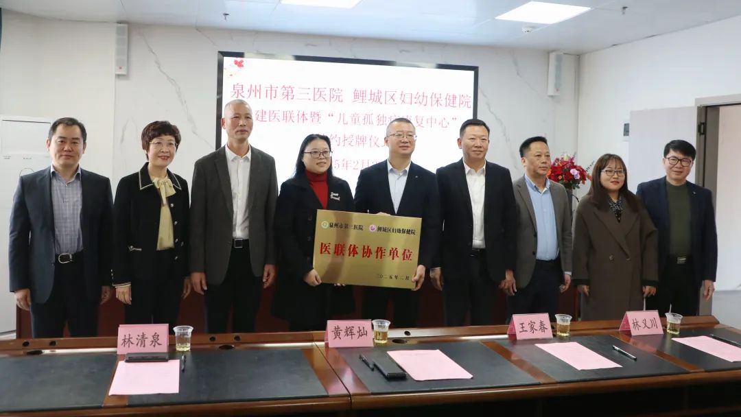 与鲤城区妇幼保健院共建医联体,是贯彻落实2025年全国卫生健康工作会议和全市卫生健康工作会议精神,也是贯彻落实国家“2025-2027年儿科和精神卫生服务年”和2024年市委市政府为民办实事项目—儿童孤独症筛查干预服务的一项重要举措。目的就是提升鲤城区妇幼保健院儿童孤独症筛查、康复干预服务水平,建成辐射中心市区的儿童孤独症康复服务中心模范单位,提供专业、高水平、规范的孤独症康复干预服务的可及性,打造泉州市儿童孤独症康复干预医联体模板,为下一步普及推广建立基础。
