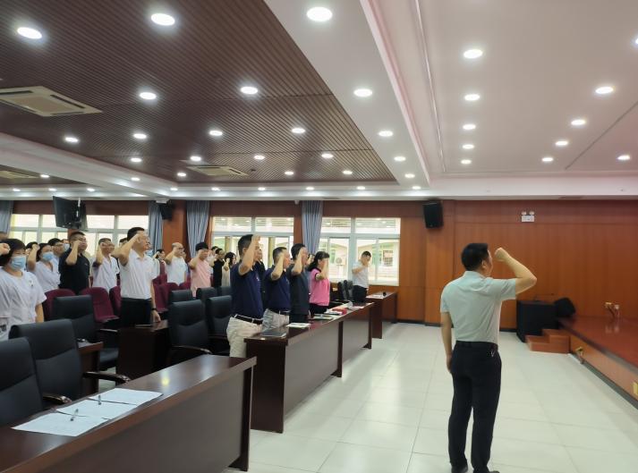 党委书记林义川同志带领全体党员重温入党誓词。他们在鲜红的党旗下,举起右拳,庄严宣誓。一句句铿锵有力的誓言,凝聚着党员同志对党忠诚的坚定信念,激励着大家做到心中有党、心中有民、心中有责、心中有戒。